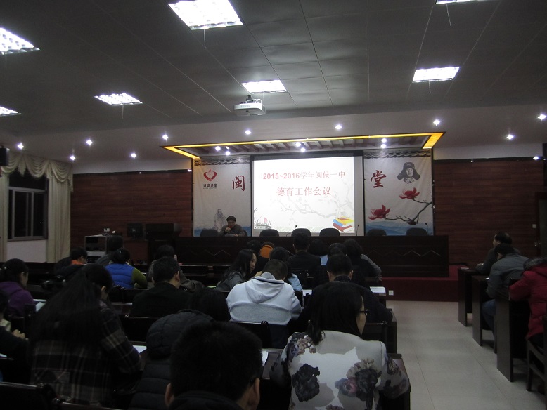 2015年12月14日,闽侯一中召开德育工作会议暨德育经验交流会。会议由德育处叶副主任主持,几位经验丰富的班主任做了年段及班级管理经验介绍。郑书记在会上分享了自己多年德育工作的感悟,勉励老师们要做到“目中有人,心中有爱”。最后,姜校长对我校德育工作做了进一步的指导。